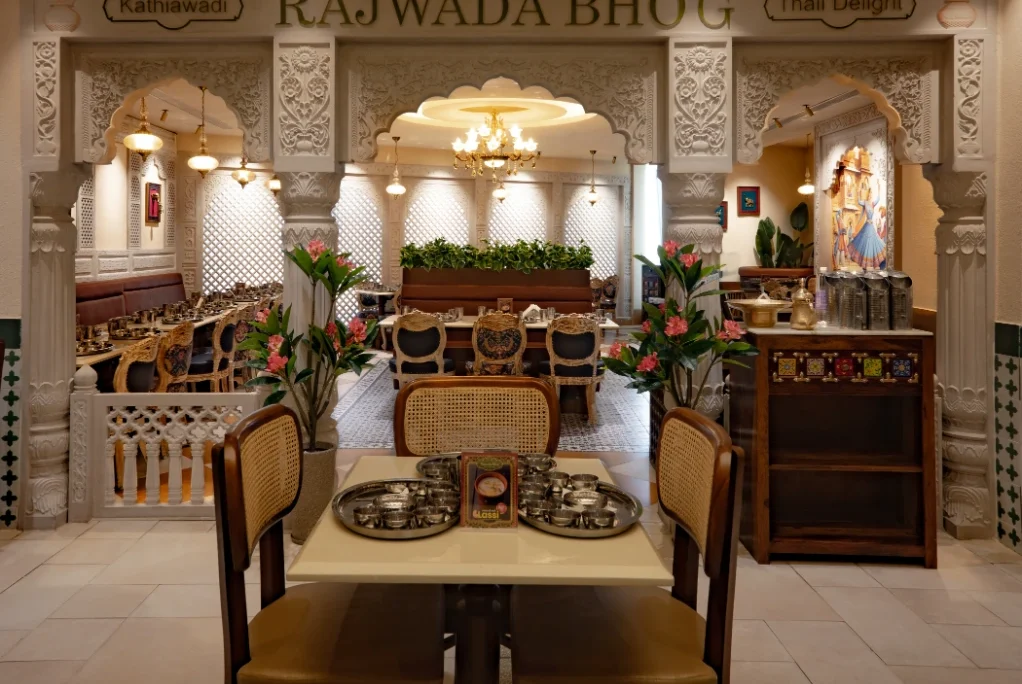 PROJECT INFORMATION Project Name: Rajwada Bhog Location: Pacific Mall, Dwarka, New Delhi Size: 2500 sq. ft. Design & Build: RS90 Design Studio Rajwada Bhog Rajwada Bhog at Pacific Mall, Dwarka is conceived as a contemporary interpretation of royal Rajasthani dining. The space blends traditional craftsmanship with modern functionality—featuring hand-painted floral…